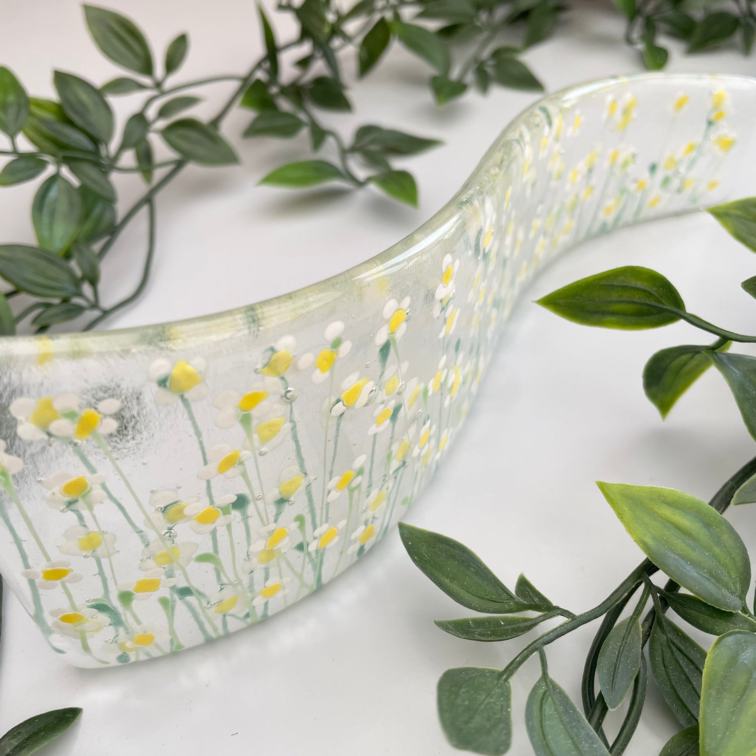 Fused glass hand painted Daffodils ~ mini curve