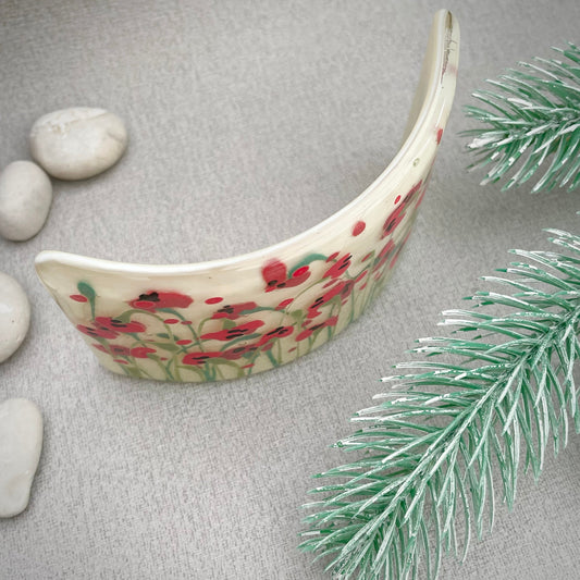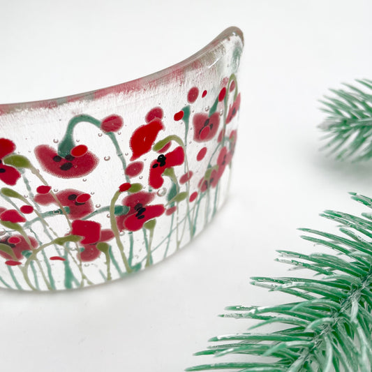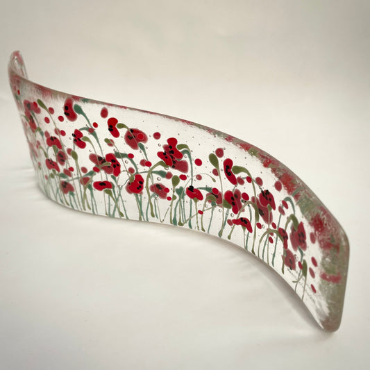 Fused glass hand painted Poppies Mini Curve ~ Clear