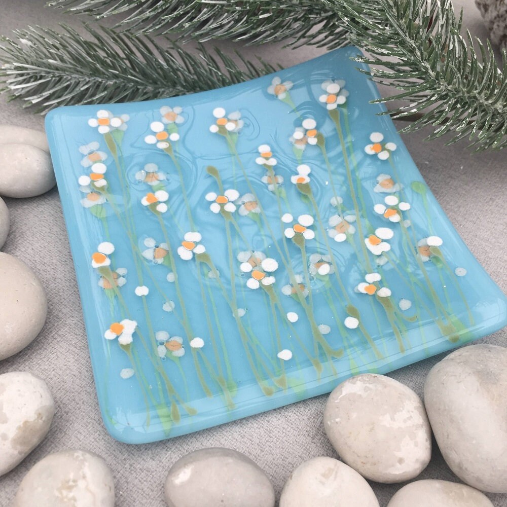 Gorgeous handmade glass dish, every one of these is hand painted which makes each of them unique! Daisy Meadow shown here is one of a handful of dishes I have listed here on Etsy ~ do check out the other designs in my shop :)